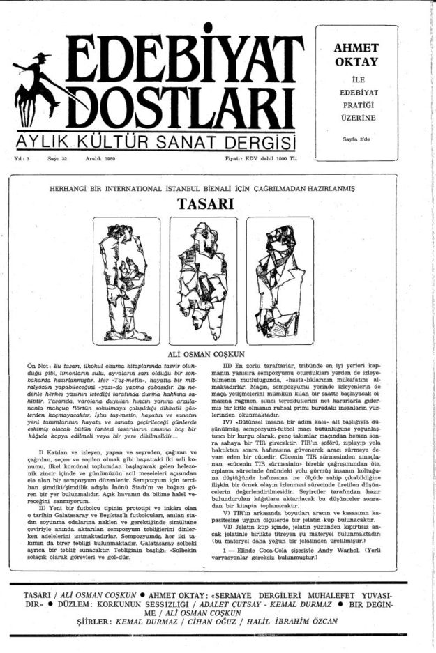 “Tasarı”, Aralık 1989, Edebiyat Dostları – sayı: 32